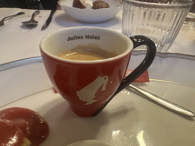 エスプレッソ・コーヒーは、メニュー名にもあるようにJulius Meinlユリウス・マインルというオーストリアのウィーンで有名なブランドのものです。以前、ウィーンに行った際にお土産でJulius Meinlのコーヒーを買って帰った事があったので、懐かしく思い注文してしまいました。