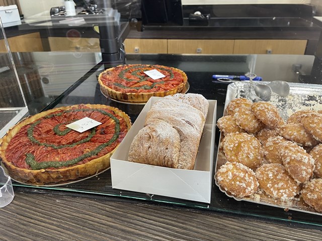 ピスタチオとグリオットの組み合わせは聞いただけで美味しいに決まっている!と思ってしまうぐらい私の好きな組み合わせです。グリオット(サクランボの品種)はクリ(Coulis果物を生あるいは軽く煮て果肉を裏ごし、果汁に糖分を加えたもの)にして、ピスタチオ生地に2層サンドしてあります。生地はスポンジ生地に近くしっとりして歯切れがよく、半分ほど一人で食べてしまいました。