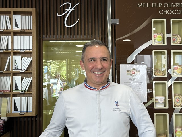 このお店のシェフ、フレデリック・アヴェッカー氏はM.O.F.のコンクールで2007年にファイナル、2011年には M.O.F.ショコラティエ(Meilleur Ouvrier de France Chocolatier-Confiseur)の称号を受賞されました。2015年にはC.C.C(Club des Croqueurs de Chocolatフランスのショコラ愛好家による会)で賞を獲得。こちらの賞はパリで誕生した世界最大級のチョコレートの祭典「サロン・デュ・ショコラ」の開催に合わせて、毎年発表されます。そんなすごいシェフですが、写真撮影にもとても気さくに応じてくださいました。