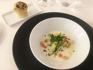 もちろん予約しているお客さんはいますが、周りのテーブルを見ると、ふらっと来たお客さんがいたり、老夫婦がとても楽しそうに食事をしていたり、一人でゆったり食事をしていたり、、、星がついているから堅苦しいという感じは全く無く、ゆったりと流れる空間のなかで、自由に食事を楽しめるレストランだと感じました。