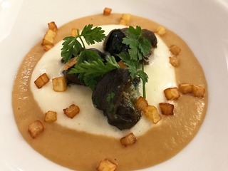 エスカルゴの下には軽いムースが敷かれており、クリーミーなじゃがいものムースと玉ねぎを飴色まで炒め、香ばしさと甘さがあるムースの2種で、エスカルゴ独特の風味もこのムースと一緒に食べることで口の中で良い相乗効果となっていました。