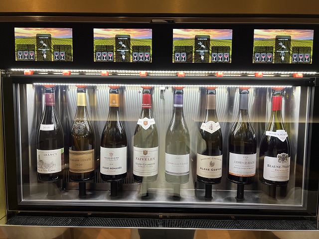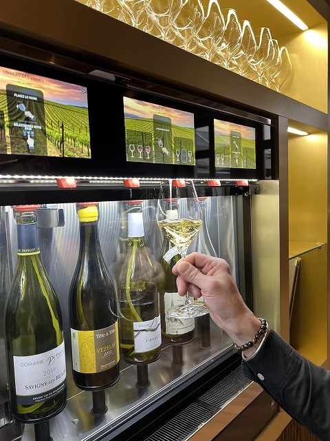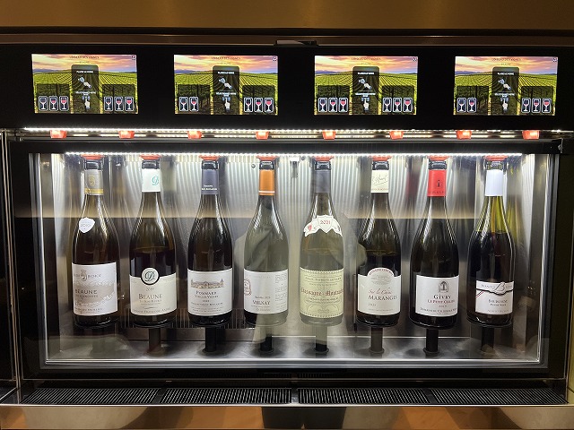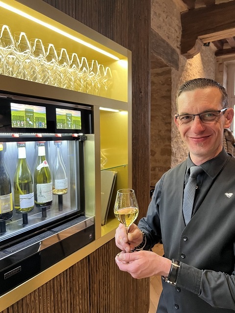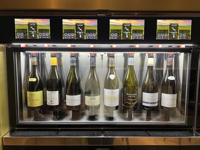 グラスワインは32種類から選ぶことができます。フランスのどのレストランに行っても30種を超えるワインをグラスで選ぶことはできません。なぜかというとワインは抜栓をすると状態がどんどん変わっていくとてもデリケートな飲み物だからです。こちらのお店では新鮮な状態を保つために自動サーバーを取り入れ、温度管理やサーブと同時に食添用窒素ガスを注入することで品質を保持し、美味しさをキープしているのでたくさんの種類をグラスで提供できます。