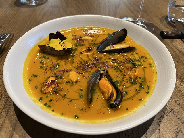 モン・サン・ミッシェル産のムール貝を入れたかぼちゃのスープです。