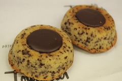 チョコチップの入ったフリアン生地の中心にガナッシュを絞っています。