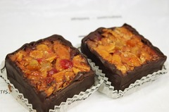 チョコレートのサバラン生地をラム酒たっぷりのシロップにくぐらせ、