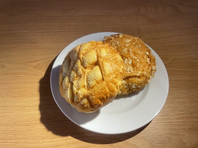 カレーパンの中には日本風で少しスパイシーなカレーが入っており、大きめな衣と相まって食べ応え抜群!メロンパンの表面はしっとりしたクッキー生地に、ふわふわのパンが口溶けよくたまりません。フランスではメロンを使っていないのになぜメロンパンというのかと物議を醸しているとか・・・?