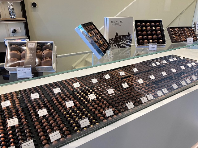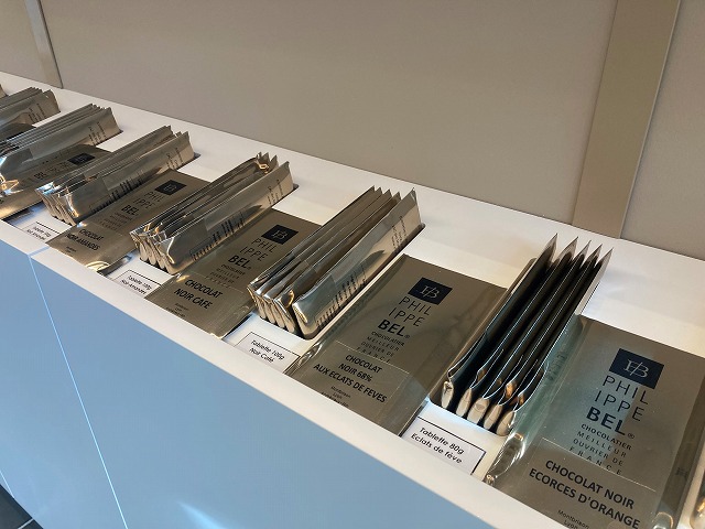 ショーケースに並んだたくさんのボンボン・ショコラはなんと46種類!ナッツや香辛料、茶葉を使ったものなど・・・どれも魅力的な製品ばかりで、選ぶだけでもワクワクしました!