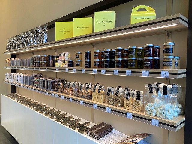 ガラス張りのお店の扉を開けると、ショーケースにズラリとたくさんのお菓子が並んでいます。ボンボン・ショコラも種類が豊富で、どれも美味しそうです。残念ながらイートインスペースはないのですが、生菓子・焼き菓子・アイスクリーム・チョコレートなど幅広く販売されており、モンクディオル氏が主に菓子系の製品を、ベル氏がチョコレート製品を担当されています。