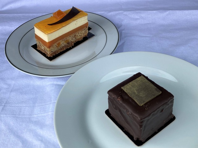 牛乳にアーモンドの香りを抽出して作ったムースとアプリコットのジュレ、アーモンドとアプリコットを混ぜ込んで焼き上げたスポンジ生地で構成。アーモンドの香りとアプリコットの甘酸っぱさの相性がとても良く、ボリュームがある生地とのバランスが絶妙でとても美味しかったです。