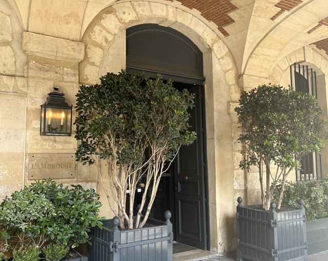 ランブロワジーはパリの4区にある、歴史的遺産価値の高いヴォージュ広場に面する場所にあります。お店もパリの中では最も歴史が深いと思います。