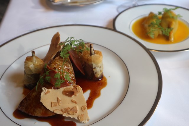 ソースは香辛料がきいたエーグル・ドゥース(甘酸っぱい)で、ガストリックを鳩のソースのベースに加えていました。