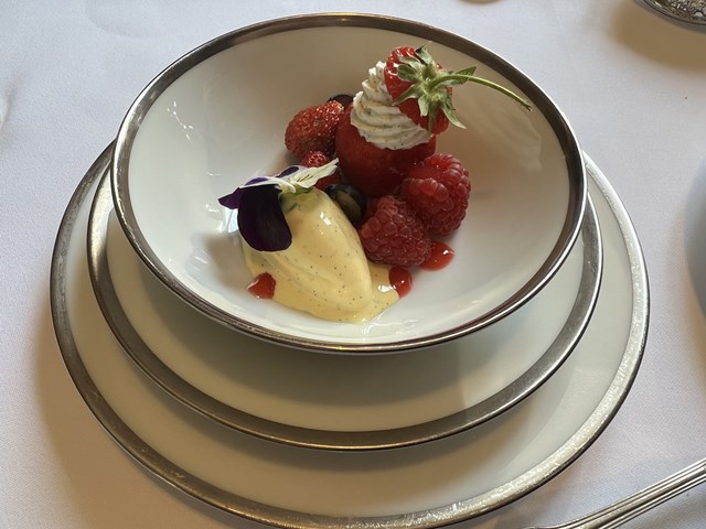 旬のフレーズアナイスと木苺、ブルーベリーとバニラアイスを添えて、見た目も美しく旬のフルーツが何より美味しいなと改めて感じました。