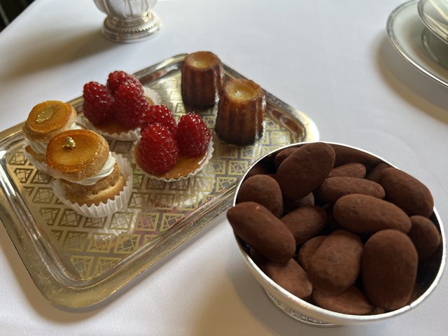 左からシュー・シャンティイ、木苺のタルト、カヌレ、アーモンドチョコです。