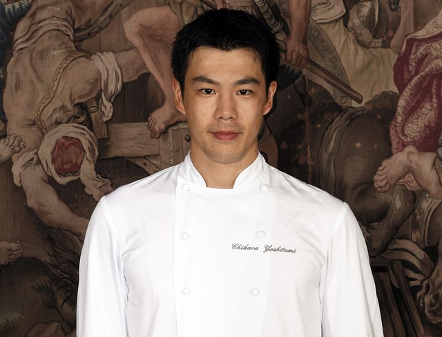 吉冨氏は熊本県甲佐町出身で九州の調理専門学校を卒業後、2008年に渡仏し、2014年から現在までランブロワジーにて勤務。2017年にはパテ・アン・クルート世界選手権優勝、そして2020年に現レストランの料理長に就任します。2022年にはフランスの権威ある料理コンクールであるプロスペルモンタニエ3位に入賞されています。