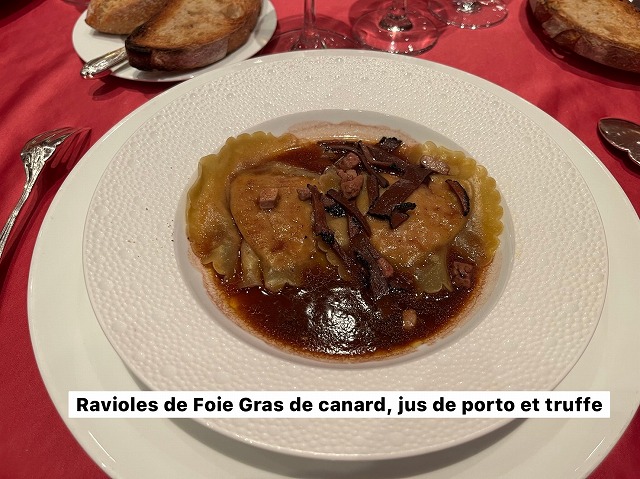 フォワ・グラのラヴィオリ、懐かしく涙が出るくらいの美味しさ。このポルトの甘味と少し軽い濃度のソースがフォワ・グラとよく合うんです!
