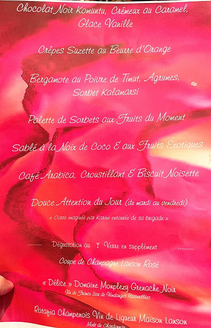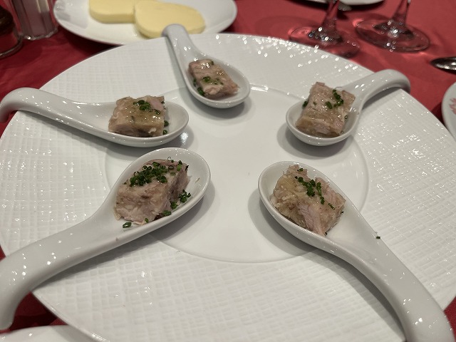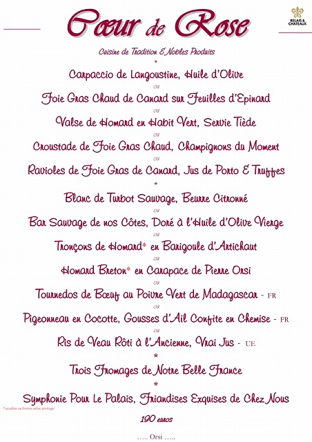 メニューは特別メニューということで190€といつもの値段設定よりはお高めですが、スペシャリテが盛り込まれた贅沢メニューです。