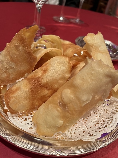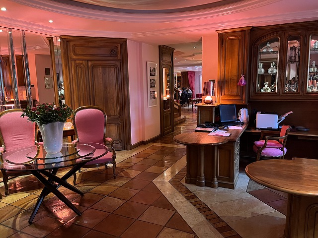 レストラン内は非常にシックで華やかでロマンチック。まるでオルゴールの中に入ったような感覚になります。赤を基調とし、絵画、家具、そしてバカラのクリスタルがたくさん並んでいて、この空間だけ古き良き時代が止まっているかのようで、非常に居心地が良いです。