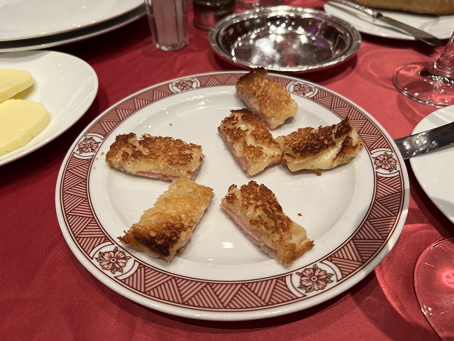 クロック・ムッシュは1つ多く、少し色づき濃いかなあなんて言っていたら、これはシェフが焼きました!と、サーヴィスの方がウィンクして言ってました(笑)