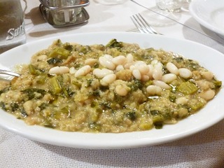 トスカーナ地方のパンを使った伝統料理。冬のフィレンツェ名物で黒キャベツ、豆、パンそしてたっぷりのオリーブ油で野菜を煮込みます。