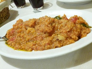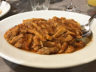 トスカーナ地方の伝統料理。内臓の煮込み。牛の第2胃である、はちの巣と呼ばれる部位を丁寧に下処理してトマトと一緒に時間をかけてじっくりと煮込んでいる。臭みはなく、トロトロまでは煮込まずほどよい食感を残す。