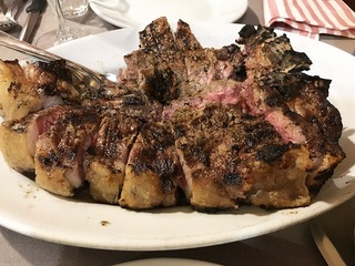 トスカーナが誇る最高牛キアニーナ牛が表面がカリカリに焼かれ、中は柔らかくジューシーに仕上げられて運ばれてきます。それを口いっぱいに頬張って食べてください。涙が出ます。
