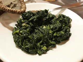 イタリアの場合、付け合わせは別に注文する必要があります。今回は、ほうれん草のソテーを。(にんにくの風味が効いています。)