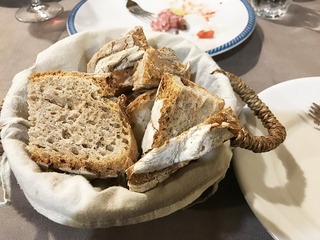 食中に出てくるパンですが、見た感じは普通ですがトスカーナ地方のパンは特徴として塩が入っていません。