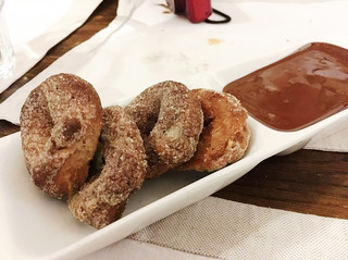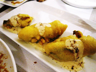 花付きズッキーニに、牛テールをシチューを詰めてフリットにし、上からチーズ・フォンデュと胡椒がかけてある。肉とチーズの旨味が合わさり、抜群の美味しさです。隣のテーブルが食べているのを見て頼んだ1皿でしたが、頼んで良かった!