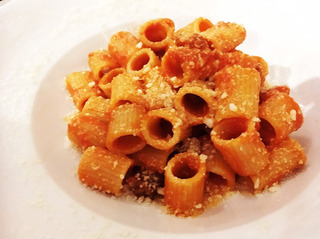 ローマといえばカルボナーラだけでなく、アマトリチャーナも忘れてはいけません。カリッカリに炒めたグアンチャーレをトマトで煮込んで、ペコリーノ・ロマーノとパルミジャーノ・レッジャーノで仕上げた一品。こんなに炒めるんだと思うほどのグアンチャーレの食感と香り。香ばしさが全面に出ている仕上がり。