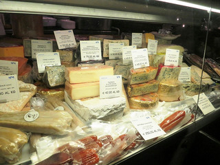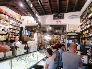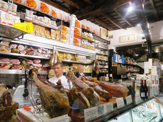 店内に入ると、サルーミ、チーズ、ワイン、他にも様々な乾物がずらっと並んでいます。
