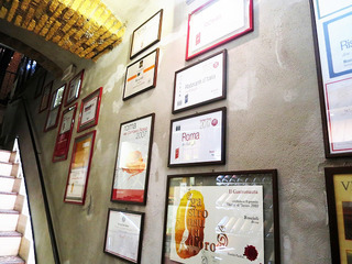 この店はカルボナーラだけでなく、食材店としても多くの受賞をしています。たくさんの賞状が飾られていました。
