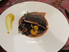 オンブル・シュバリエ(アルプス岩魚)のロースト、レンズマメ添え
