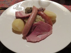 シュークルート アルザス風 これは郷土料理の代表格としてシャトーでも良く作るのですが、本場アルザスではハム、ベーコン、ソーセージの製法がドイツ風に仕上げてあるので香りがスモークの香りが高く、とても敵いません!![]()