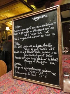 今日のお勧め料理を書いた黒板がテーブルに置いてあります。こちらはグランドメニュー以外の今の季節の特選素材を用いたスペシャル料理ですね。