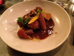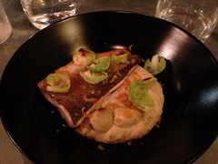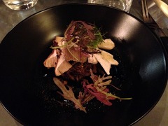 冬はジビエの季節。イノシシのコンフィ肉をほぐしたものに粒マスタードをはじめとする香辛料でアクセントをつけてありました。生のセップ茸のフレッシュ感との対比がおもしろい一品。