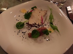 火通しが難しいと言われるオンブル・シュヴァリエ,ですが、適切に火通しされており、ほのかに香る燻製の香りがまずます食欲をそそります。カリフラワーのクリームも主材料を邪魔しないやさしい仕上がりでした。