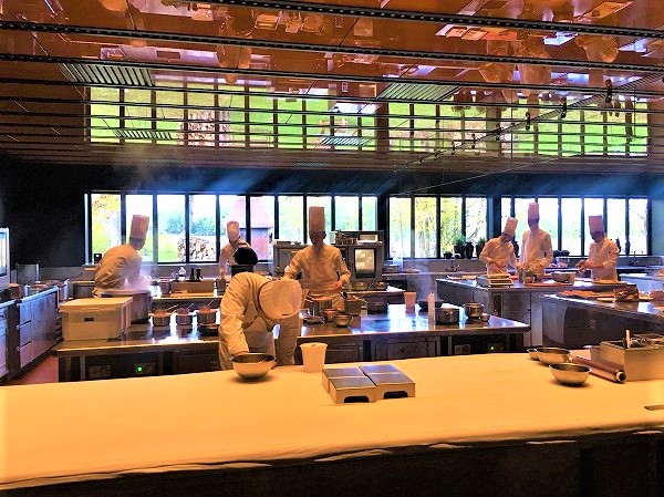 美しく広い厨房内は全体が見渡せる構造になっており、皆さんとてもきびきびと働かれていました。
