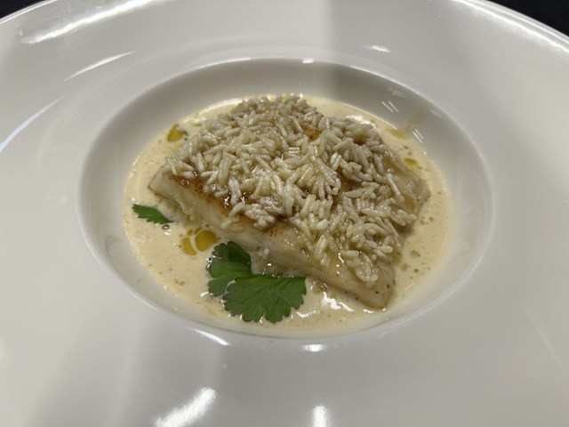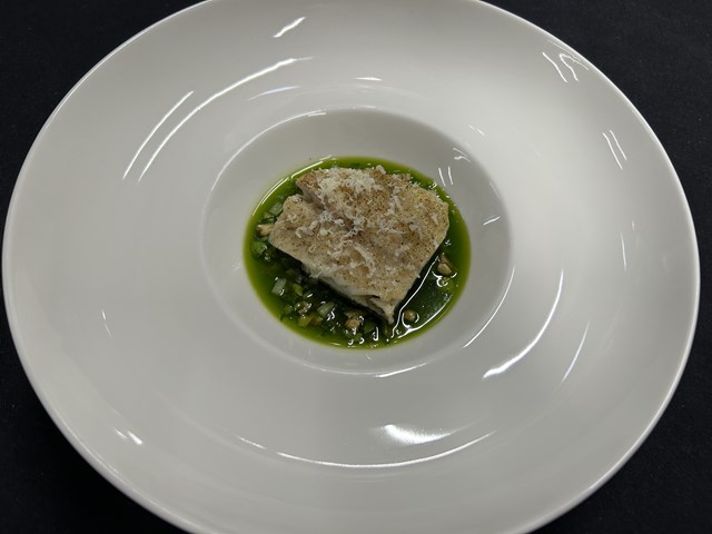 Dos de Loup, Chayotte à la Coriandre Pignons Torréfiés, Sauce Citronnelle