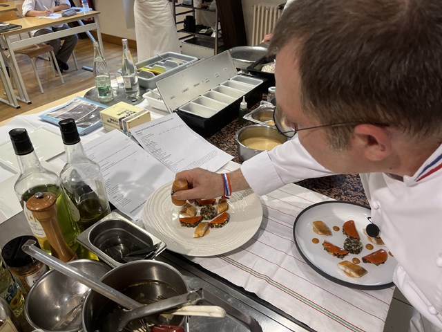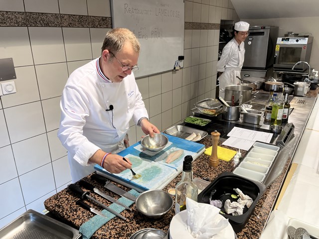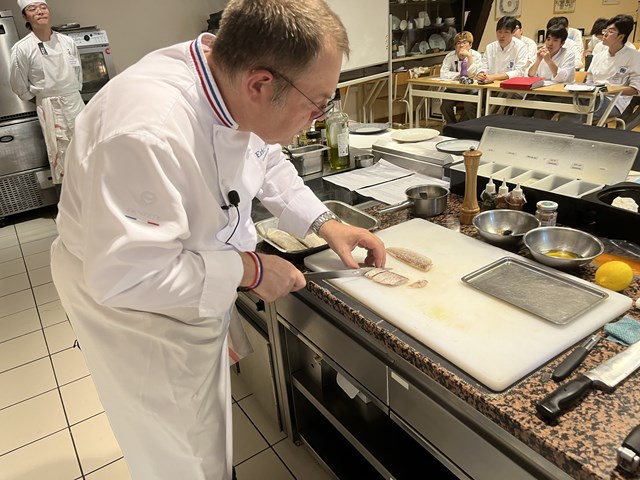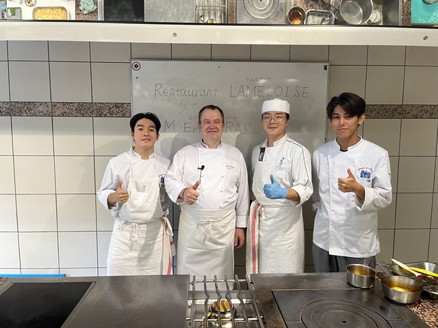 今回の外来講習は、フランス校から北に車で約2時間の距離にあるブルゴーニュ地方のCHAGNY(シャニ―)という町にあるホテルレストラン「MAISON LAMELOISE」(メゾン・ラムロワーズ)より、Eric PRAS(エリック・プラ)氏にお越しいただきました。メゾン・ラムロワーズは1926年からミシュランの星を得ており、ピエール、ジャン、ジャック・ラムロワーズの3代に渡り営業を続けてきたレストランです。1979年から2004年までミシュランの3ッ星を維持し、2007年に3ッ星に返り咲いてから現在も維持しています。