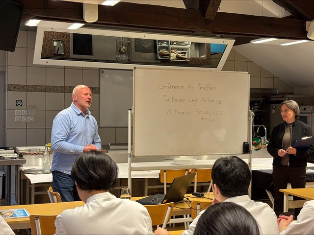 今日はトリュフ栽培・販売会社 La Baume Saint Antoine 「ラ・ボーム・サンタントワーヌ」のボワシュー氏にトリュフの専門講義をしていただきました。