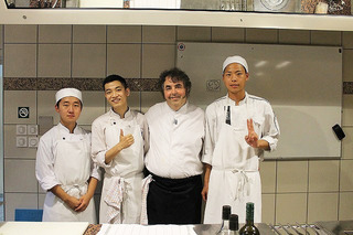 最後はシェフと講習の助手をしてくれた研究生、小山慎太郎君(左端)と永畑樹君(右端)、木下君と記念撮影。