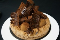 底生地と仕上げにマカロン生地を使い、チョコレートをたっぷりと使用した濃厚なお菓子で、お店の人気メニューです。
