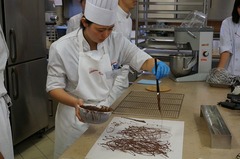 杉本さん「フランス校での初めての外来講習で私は絞りをやらせていただきました。口金の角度や絞り袋の使い方などを教えていただいたのですが、フランス語が理解できないことが多々ありました。今後はよく聞いて、もっと話して自ら動けるように頑張ります。」