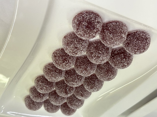 フルーツの果汁をふんだんに使用した砂糖菓子。今回は、フランボワーズとバラの組み合わせです。