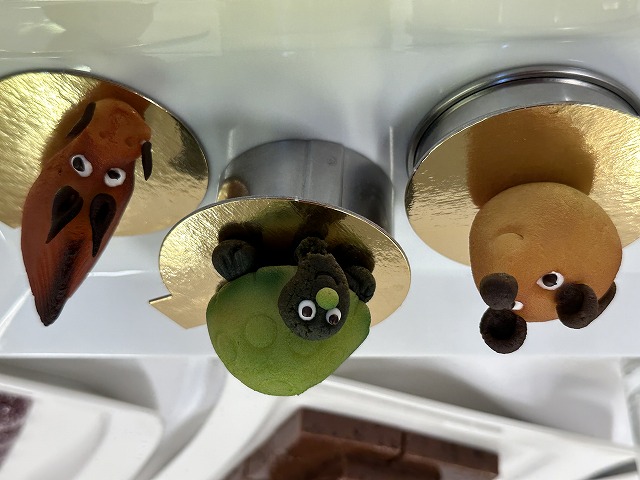 サラディノ氏が得意とされるテクニックの一つで、イノシシ、ネズミ、亀の3種類を作って頂きました。アーモンドと砂糖を主材料としており、観賞用ではなく、もちろん食べるために作られています。