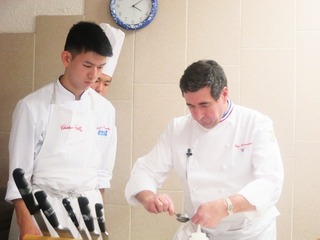 研修生の藤川君も助手として来校し、シェフと息の合った講習を行ってくれました。