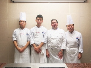 今回助手を務めた(左から)砂田君、研修生の藤川君、シェフ、佐々木さん