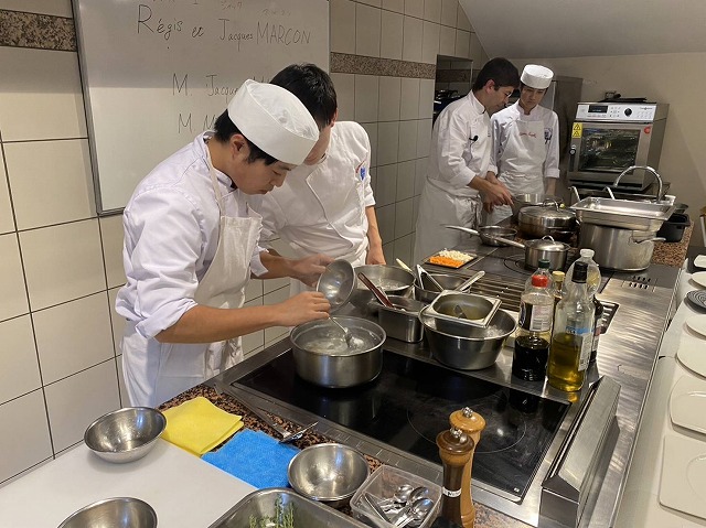 彼は若き日、レクレール校で研修をしていた事もあり、フランス校にも大変思い入れがあるそうです。また、パリのランブロワジーというレストランでも研修をされていました。