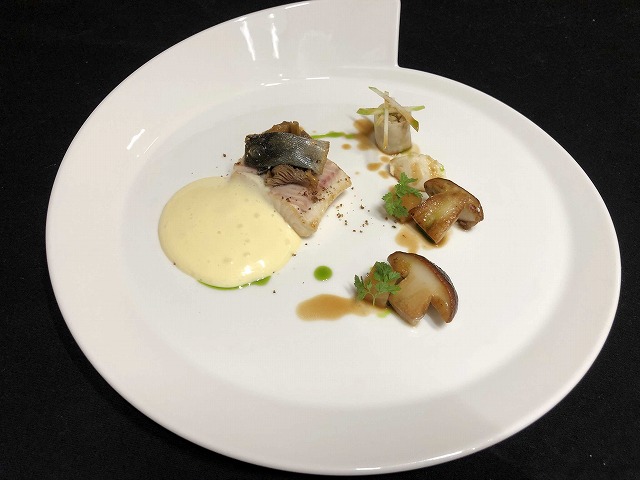 根セロリを様々な調理法で香りや味の多様さを出し、きのこ、オンブル・シュヴァリエと見事に調和した一品です。