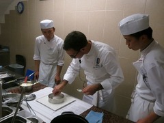 学生にとっては、初めての外来講習でしたが、肉の縛り方やソースの作り方、周りをきれいにしながら作業をするマル氏の様子は、シェフがいつもしていることと同じだと感じたはずです。![]()